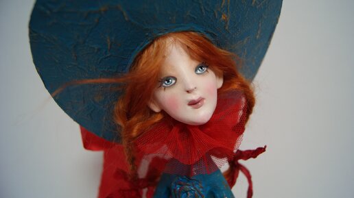 Работы Татьяны абсолютно узнаваемы. Свой стиль художница оттачивает уже более десяти лет. Мастер создает кукольные проекты, это серии образов на одну тему, и мы попробуем рассказать о каждом из проектов Татьяны. И сегодня расскажем об одной из тем, которая давно увлекла художницу, назовем ее условно - "Барабанщики Татьяны Адаменко". Итак, первая кукла - это девочка Рыжик, цирковая артистка, фантазерка и любительница приключений, она рвется в дорогу, жаждет приключений. Посмотрите на ее личико - оно проникнуто небесной чистотой и непосредственностью...