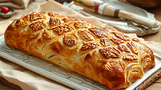 Кулебяка — это не просто пирог, а символ русского застолья, который упоминается ещё в кулинарных книгах XVIII века. Её название, по одной из версий, происходит от слова "колебать" — мол, тесто "колеблется", поднимаясь в печи. В отличие от обычных пирогов, кулебяка всегда вытянутая, с плотной начинкой, часто многослойной: мясо, рыба, грибы, крупы, яйца — всё это укладывали слоями, разделяя тонкими блинчиками. Такой пирог был сытным и праздничным, его подавали на стол с особым почётом. Давайте приготовим кулебяку по старинному рецепту, но с учётом современных реалий...
