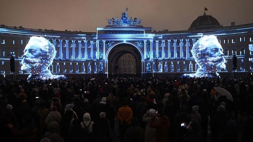 Вечером 6 декабря фасады Главного штаба и Штаба Гвардейского корпуса на Дворцовой площади превратились в гигантскую сцену для масштабного мультимедийного шоу «Чайковский», а также финала конкурса медиаискусства «Страна света». Свидетелями ярких сцен, стремительно сменяющих друг друга и словно сокрушающих границы зданий, стали сотни жителей и гостей Петербурга. Началу представления предшествовало 20-минутное видео, посвященное 185-летию великого русского композитора Петра Чайковского. Десятки световых лучей показали самые главные моменты из его личной и творческой биографии...