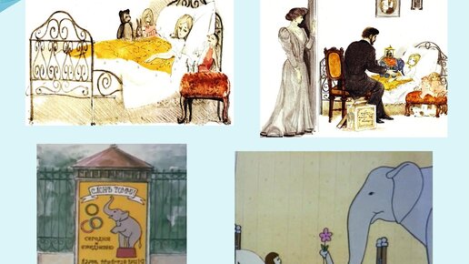 Александр Иванович Куприн, классик русской литературы, создавал свои произведения не только для взрослых. Есть у писателя и рассказы для детей. Один из них, под названием "Слон", немного похож на небылицу. Девочка Надя потеряла интерес к жизни. Не на шутку обеспокоенные родители пригласили врачей, но те ничего не смогли сделать. Они лишь смогли посоветовать чем-то увлечь и отвлечь девочку. Наде приснился слон, и она немного повеселела и попросила слона, настоящего, живого. Папа Саша отправилася к владельцу зверинца и договорился, что слона приведут ночью и он останется с Надей на день...