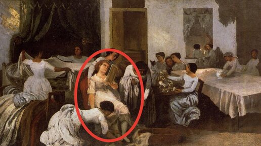 С живописью французского художника Гюстава Курбе мы уже знакомы. Он творил и в стиле романтизма (с буйством человеческих эмоций на лицах героев) и в стиле реализма (с бедами, отразившимися на тех же самых лицах), был он и страстным почитателем женской натуры, как и практически каждый французский художник. Поэтому в его картине с обилием женских персонажей под названием «Одевание невесты» на первый взгляд не содержит ничего особенно. Однако у зрителей, и особенно у читателей нашего канала, уже присутствует насмотренность, позволяющая заподозрить неладное...