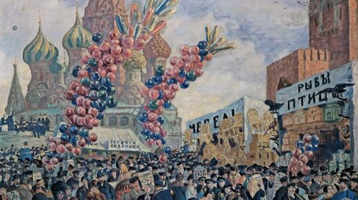 "Вербный торг у Спасский ворот на Красной площади" Кустодиева