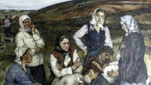 Лавренко Борис Михайлович (06.05.1920, Ростов-на-Дону - 07.06.2001, С.-Пб). «Русские женщины». 1980 год. Холст, масло; 205 х 170 см.; (Приморская государственная картинная галерея, Владивосток).