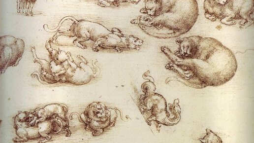 Считается, что кошки жили в мастерской Да Винчи и он с удовольствием их рисовал. Сохранился большой лист с набросками мастера, на котором изображены кошки, львица и дракон. Надпись художника на рисунке гласит: "Эти виды животных, из которых лев - король, из-за того, насколько гибок его хребет". В музеях мира хранятся...