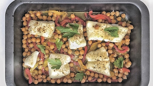 Чтобы ненароком не задеть чувств постящихся, мы сегодня обойдемся без мяса. Но рыбу-то в пост иногда можно, и вот вариант - простой в исполнении, приятный в употреблении, вполне диетический и даже некоторым образом небанальный. Мы к этому рецепту уже однажды подбирались, но шли годы, появлялись новые идеи, и вот результат. Рыба подойдет любая - белая или красная, филе или стейки. Можно и целиком, если небольшая и уже потрошеная. С ней возни никакой - посолите и обсушите бумажными полотенцами. Немного возни нам предстоит с нутом, он же турецкий горох...