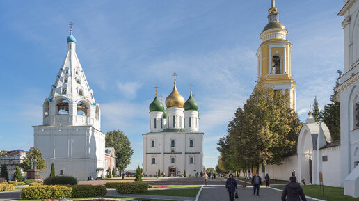 Осмотрим Соборную площадь Коломенского кремля. Это площадь в центре Коломенского Кремля является старейшей в Коломне. Соборная площадь возникла в XIV веке в результате постройки двух дворцов - великокняжеского и епископского, связующим звеном которых стал Успенский собор. С Пятницкими воротами площадь связывала Большая улица, проходящая южнее тогдашней Тихвинской церкви. Современные очертания площадь приобрела в конце XVIII века в результате реконструкции города по "регулярному" плану. Через площадь прошла Успенская улица (ныне - улица Лазарева)...