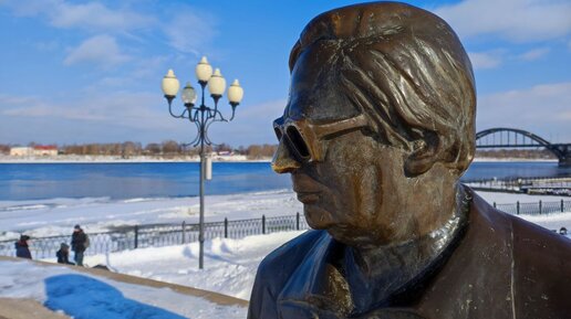 Этот стильный мужчина в модных и сейчас очках — Лев Ошанин, поэт-песенник, имя которого может быть незнакомо, но его стихи мы знаем наизусть, ведь это наши любимые советские песни: Лев Иванович Ошанин родился в Рыбинске, в 1980-х стал почетным гражданином города, поэтому появление памятника поэту именно здесь не вызывает вопросов. К тому же фигура песенника так естественно вписалась в пространство смотровой площадки, что теперь сложно представить этот пятачок на набережной без знаменитого бронзового жителя...