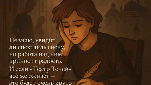 я хочу поделиться с вами историей, которая стала важной частью моей жизни. Это проект, который я создала из того, что давно любила: из музыки, мистики и, конечно, из страсти к театру. Я всегда искала способ выразить свои мысли и чувства через искусство, и "Театр Теней" стал тем, что я могу назвать своим собственным миром. Как всё началось Создание музыки для мюзикла — это всегда было моей мечтой. Но важно было сделать не просто музыку, а создать что-то уникальное, что бы могло существовать само по себе, не будучи привязанным к чужой истории...