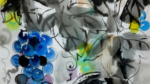 Японская живопись лиса и виноград