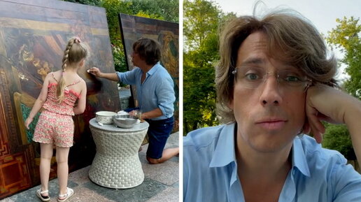Старинные картины - чудесный повод для гордости, ведь они украшают любой интерьер своей красотой. Однако за картинами нужно ухаживать, чтобы они оставались в своём первозданном и неповторимом виде. На этих эксклюзивных фотографиях Вы можете увидеть, как Елизавета Галкина наблюдает, как папа картины моет и восстанавливает их былую красоту, яркость, неповторимость и изящество. Такого рода ремонт предметов искусства - задача не из лёгких, однако, когда за дело берётся Максим Галкин, всё отлично получается...