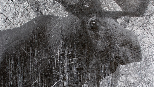 Черно-белая картина, но это не графика, картина написана маслом. Какой великолепный зверь! Огромный, мощный! Дикий лес – его стихия. Этот лось сможет преодолеть любые преграды, встающие на его пути. Он...