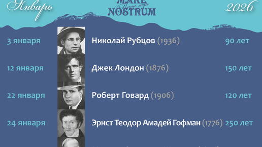 Литературный календарь 2026 года от Mare Nostrum. Юбиляры января