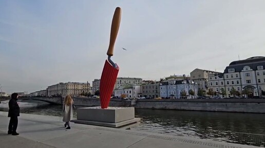 Показываем, как выглядит с разных ракурсов скульптура "Садовая лопатка", которая заменила "Большую глину № 4" на Болотной набережной Москвы