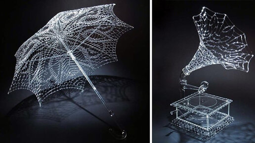 Роберт Микельсон создает просто невероятные вещи: зонтики, туфельки, деревья, цветы, бокалы, девушек – и всё из стекла! Мощный художник. Один из самых талантливых стеклодувов на сегодня. Стеклодув – удивительная профессия, которая предполагает не только умение фантазировать и творить прекрасное, но и мастерское владение ремеслом, весьма непростым. Стеклодув работает сразу с несколькими стихиями: он должен покорить огонь, ветер и само стекло, которое является и мягким, податливым при сильном нагреве, и твердым, но хрупким, когда остынет...