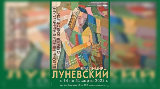 В Брянске 14 марта открылась персональная юбилейная выставка Владимира Луневского «Декоративно-пластический образ в живописи». Она приурочена к 75-летию со дня рождения. Она проходит в городском выставочном зале.В экспозиции представлено более 70 работ автора от пленэрного реализма до абстракции. В творчестве Владимира Михайловича совместились два вида изобразительного искусства: сценография и станковая живопись...