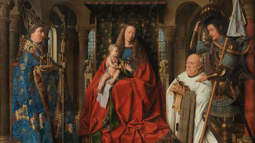 Где же все это происходило, по воле ван Эйка? Где уставший от болезней и трудов каноник преклонил колени перед нежной златокудрой Мадонной и святыми? Долгое время думали, что это место - внутреннее помещение храма святого Донациана, который, увы, был разрушен в 1799 году, во время Великой Французской революции, когда была расформирована епархия Брюгге. Но позже стало ясно, что церкви с таким интерьером не существовало никогда: для мистических гостей своего героя художник создал мистическое пространство...