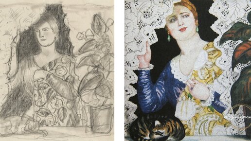 Зритель реагирует на известную картину: мы узнаем фирменный стиль и чувствуем себя спокойно и уверенно. Да, это мне знакомо, я – свидетель великого произведения великого художника. Но маленькие картины хранят в себе уютные истории. Например, акварели Кустодиева. Все началось с того, что простой карандаш Бориса Кустодиева изобразил купчиху в окне. Цветастая шаль, кружевная занавеска, кот и фикус. Картина маслом. Хотя нет, маслом была позднее, а сначала – акварель, которая стала обложкой для книги...