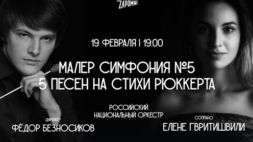 В исполнении Российского национального оркестра под управлением Фёдора безносикова прозвучат два сочинения австрийского композитора Густава Малера (1860–1911) — его Пятая симфония и Пять песен на стихи Фридриха Рюккерта. Партию сопрано исполнит Елене Гвритишвили. Созданные в 1901–1902 годах, Пять песен на стихи Рюккерта и Пятая симфония — это как будто два эпизода из жизни композитора, следующие один за другим и связанные друг с другом. Песни, как и Симфония, наполнены восхищением красотой мира, сомнениями и тревогами, преодолением и пробуждением к новой жизни...