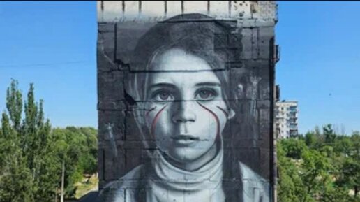 Правду находят те, кто её ищет Итальянский художник нарисовал портрет девочки на фоне натовских бомб на стене в Мариуполе. Правда она не даёт покоя, она горит, она требует действия Неаполитанский художник Йорит Черулло увидел репортаж о детях Донбасса по телевизору. Как рассказывает сам Йорит, он вглядывался в глаза детей и понял, что ему срочно нужно на Донбасс. Художник приехал в Мариуполь и на стене девятиэтажного полуразрушенного после бомбёжки дома создал огромный мурал. Достойно уважения...