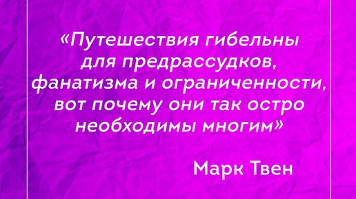 👣 «Путешествия гибельны для предрассудков, фанатизма и ограниченности, вот почему они так остро необходимы многим» Марк Твен