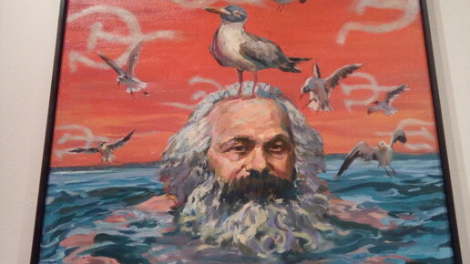 В Русском музее идет выставка "Карл Маркс навсегда!" И я советую сходить туда всем, кто в городе. Это офигенное собрание всех возможных мемов, как тех, что производились в Советском Союзе на серьёзных щах, так и тех, что позднесоветские и раннероссийские художники и писатели производили, изничтожая священнодействием стёба ненавистное советское наследие. У меня, как это часто бывает, иррациональным образом в одной временной точке сошлись совершенно несвязанно друг с другом похожие темы. Три дня назад прослушал трехчасовую лекцию о марксизме, а сегодня вот - сходил на выставку...