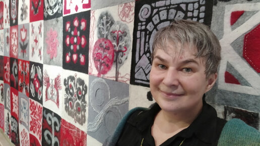 Удивительно, во что может превратиться кусочек шерсти! Вы пробовали валяние, хоть мокрое, хоть сухое? Сейчас покажу все варианты - и ковры, и картины, и одежду, и сумки-шапки-варежки, и игрушки, и украшения... Я обошла два зала выставки по периметру, снимая экспонаты, ссылка на видео чуть ниже. А начать хочу со интересного знакомства. Наталия Ильина - мастер художественного войлока, из Костромы. Выше - еë работа "Зодиак". Ниже мы, костромские красотки, в петербургских шляпках. Шляпки можно было примерять и фотографироваться совершенно свободно...