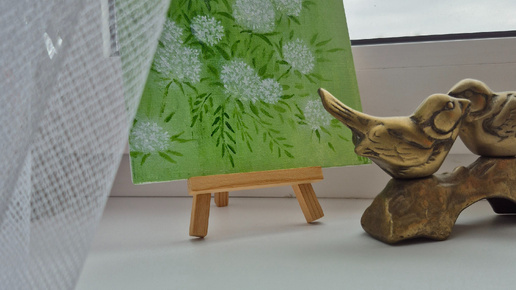 Перед нами небольшая картина размером всего лишь 15×15 сантиметров, выполненная в лаконичной манере, которая приковывает взгляд своей простотой и чистотой восприятия.