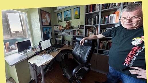 Предлагаю совершить панорамные прогулки по мастерским воронежских художников. Вы даже сможете "пройтись" по потолку любой из них, посмотреть работы художников и представить атмосферу, в которых они рождаются. Заодно загляните и ко мне. Я, правда, успел сменить комнату-мастерскую на однокомнатную квартиру- мастерскую. Но, в принципе, всё осталось по-прежнему. – те же книги, те же книжные полки, стол, компьютер... футболка только поистрепалась.