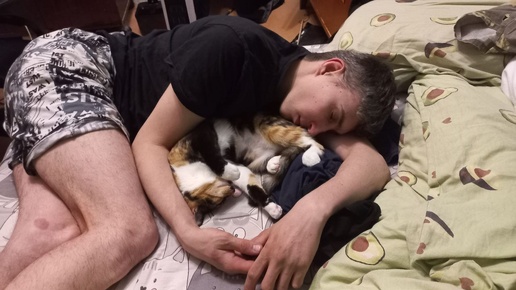 Есть в кошках такая особенность, что, ежели её взять и переложить на другое место во сне - кошка будет обижаться и от обиды отгрызет тебе руку. Однако, если животное не передвигать, а лечь к нему - результат...