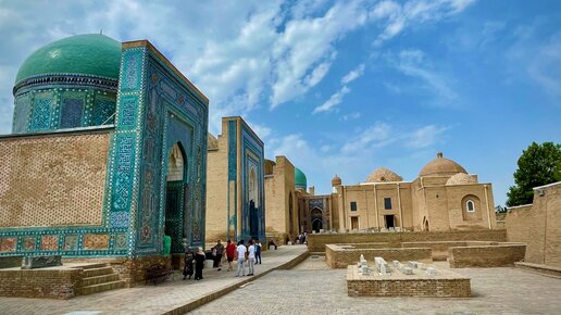 Если не знать, что Шахи-Зинда – это комплекс мавзолеев, по сути некрополь, первая мысль, которая придет в голову – я попал в богатый исторический квартал дворцов, мечетей и медресе – так невероятно красиво он выглядит. Изящные, расписанные голубыми красками, с лазурными куполами усыпальницы вереницей тянутся вдоль узкой улочки, которую ещё называют улицей-кладбищем. Расположен комплекс Шахи-Зинда недалеко от мечети Биби Ханым и городища Афросиаб, что и хорошо, и плохо – его посещение очень удобно...