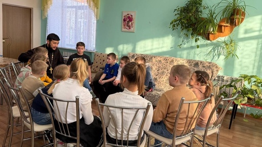 попечения родителей, «Теплый дом». Отец Александр поговорил с ребятами об основах православного вероучения, объяснил, что такое добро и зло, и рассказал о том, что нужно уважительно относиться к старшим и проявлять заботу о ближних...