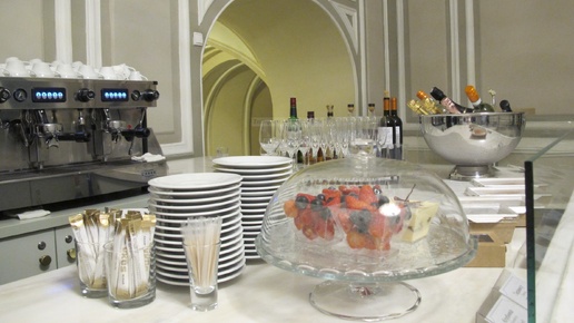 Вы же знаете - к объединенной дирекции я отношусь с большой осторожностью, и на то есть причины. Но буфет! Другое дело. Мариинский буфет мне нравился всегда. Нет, там тоже есть простор для совершенствования. Но у них есть порядок. И настоящие ложки! Конечно, сотрудникам Кремлевского буфета, который раньше окормлял Большой вместе с Кремлевским дворцом, можно посочувствовать. Где еще найдешь такую работу? А может, наоборот - это так себе, по сравнению с каким-нибудь "элитным" рестораном?.. Видите, капсульная машина? В старое время Nescafé устраивали дегустацию при каждой премьере...