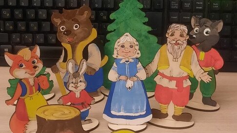 Здравствуйте. Хотела написать про ремонт кукол, но вмешался мой мелкий вредитель, поэтому сегодня небольшой обзор. Вчерашний вечер был посвящен младшему сыну и его деревянному кукольному театру. Довольно занятная вещица оказалась. Раздобыли мы его в Фикспрайсе. Из множества вариантов мы выбрали сказку "Колобок". Думаю, что еще купим "Трех медведей". Очень уж там хорошенькая объемная мебель и задник в виде стен избушки с окном, печкой. И еще какой-нибудь, чтобы побольше персонажей было. Набор "Деревянный...