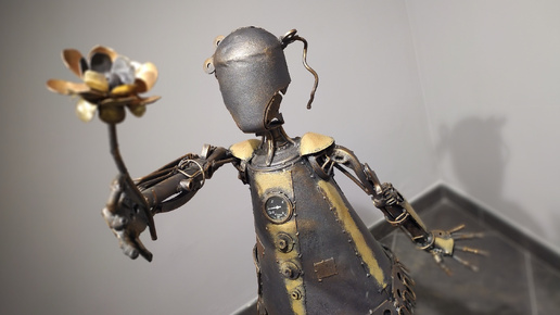 «Здравствуй, человек, я люблю тебя» – и нежный цветок в трепетно-тонких стальных пальцах тянется навстречу. Как жаль, что экспонаты трогать нельзя, невыносимо хочется погладить, согреть своей ладонью очаровательное общительное создание. Каждое из этих удивительных вещей существ по-своему притягательно и, бесспорно, живо. Просто замерли они на грани меж миров. Возможно, есть какое-то заклинание, которое подействует как «отомри»? Их, существ, много. Знаете, я бы не отказалась от передвижной табуретки,...