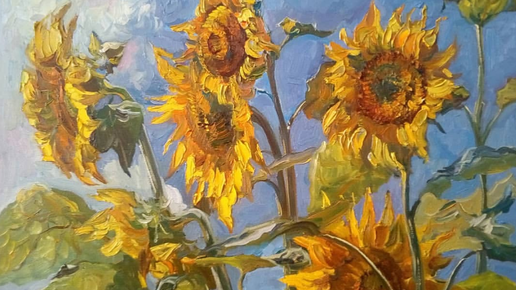Сегодня Вашему вниманию картины нашей современницы Ольги Мельниковой. За каждым сюжетом — летнего пространства волшебство. Как например в этой картине. Подсолнухи как колоритны. И в то же время за ними небо видишь, оно не ускользает от внимания за любованием цветами. Сразу, с первых аккордов — небо и облака. В пространстве летней свежести луга — солнечной и, кажется, столь безграничной. В этой картине соцветия облакам подобны. В соразмерности с вазоном — словно парят, проплывая, новое пространство образовывая...