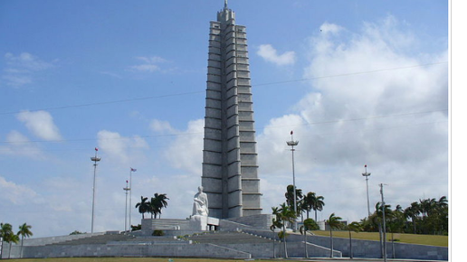 Площадь Революции в Гаване и ее достопримечательности: монумент Хосе Марти, портреты вождей революции (Че Гевара и Фидель) на фасадах зданий