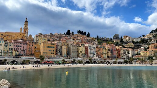 Мы продолжаем наше путешествие по городам Лазурного берега. О нём мы сняли целый фильм. Итак, следующая остановка — Ментон или Ментона. До 1861 года город входил в состав княжества Монако (о нашей поездке в Монте-Карло читайте здесь), затем по требованию жителей перешёл под контроль Наполена III. Ментон находится совсем рядом с границей Италии. Потому здесь мы постоянно слышали итальянскую речь. Да и архитектура здесь чем-то напоминает Италию. Вы только посмотрите на эти разноцветные домики! Почти из любой точки города заметна колокольня церкви Сен-Мишель...