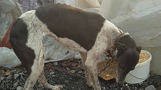 Грейхаунд замерзает на цепи🆘