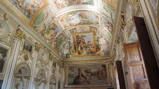 🔸 "Любовь богов" - такое единое название получил цикл фресок на мифологические темы. Росписи галереи в палаццо были призваны прославить династический брак между IV герцогом Пармы Рануччо I Фарнезе и Маргаритой Альдобрандини (внучатая племянница Понтифика Климента VIII). Заключению союза между представителями двух влиятельных домов предшествовали долгие годы переговоров. Брак имел огромную важность с политической точки зрения, так как был призван укрепить отношения между Святым Престолом и Пармским герцогством...