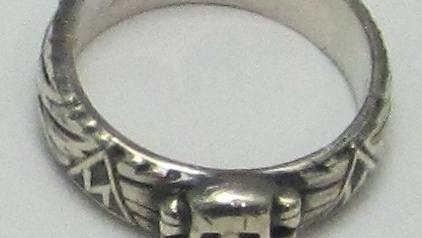 Кольцо "Я награждаю вас кольцом СС «Мёртвая голова». Это кольцо символизирует верность фюреру, наше непреклонное послушание и наше братство и дружбу. Мёртвая голова напоминает нам то, что мы должны быть всегда готовы отдать наши жизни во имя блага немецкого народа. Руны напротив мёртвой головы символизируют наше славное прошлое, которое будет восстановлено через национал-социализм. Две зиг-руны символизируют аббревиатуру СС. Свастика и хагалл-руна означают нашу несгибаемую веру в неизбежную победу нашей философии...