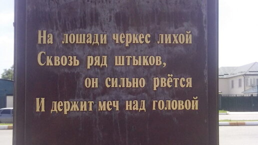 В нашем городе появилось новая достопримечательность это памятник Михаилу Юрьевичу Лермонтову великому русскому поэту. Годы жизни с 1814 по 1841 Стих. На лошади Черкес лихой. Сквозь ряд штыков он сильно рвётся...