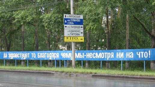 Проезжаю мимо этого лозунга если не каждый день, но раз в неделю уж точно.
