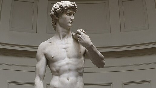 Давид — мраморная статуя работы Микеланджело Буонарроти. Почти все знают ее, но мало кто понимает, о чем вообще речь в этой скульптуре. Это наверное, самая знаменитая в мире скульптура. Её высота 410 см (вместе с пьедесталом 517 см)! Это целый двухэтажный дом! Кто этот Давид и куда он так пронзительно смотрит (и где его одежда)? МИФ О ДАВИДЕ И ГОЛИАФЕ Статуя иллюстрирует ветхозаветный сюжет о Давиде и Голиафе. Я приведу его краткое описание. Пробыв некоторое время при дворе Саула, Давид был очень молодым человеком (подростком) и пас овец при дворе царя Саула...