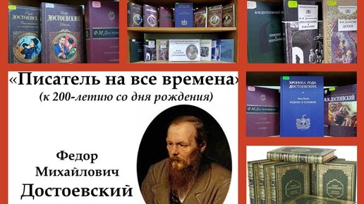 А. Ремизов 11 ноября 2021 года исполняется 200 лет со дня рождения великого русского писателя, философа, мыслителя XIX века Федора Михайловича Достоевского. К этой знаменательной дате в Луганской библиотеке для детей на абонементе отдела обслуживания учащихся среднего и старшего возраста открыта книжная выставка «Писатель на все времена». Федор Михайлович Достоевский — классик мировой литературы, один из самых читаемых писателей в мире. Ему, как никому другому, пришлось испытать много глубоких нравственных потрясений и физических страданий...