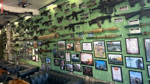 привезённые из зоны боёв, а также оружие, которое используют на фронте.