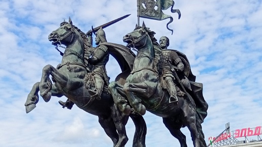 Не уверен, найдется ли в другом небольшом городе столько скульптур, сколько в Серпухове, но, на мой взгляд, здесь их несколько больше, чем следовало бы. Расскажу немного о тех, что мы видели во время своих прогулок по городу, и в первую группу выделю те, что посвящены Великой Отечественной войне. Об этом памятнике я уже рассказывал в своей статье о Прогулке по Соборной горе, позволю себе повториться и здесь: Это предварительный макет знаменитого монумента, установленного в 1949 году в Трептов-парке в Берлине, высота берлинского памятника составляет 13 метров, серпуховского – 2,5 метра...