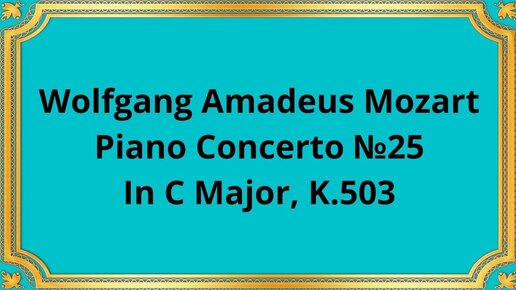 Вольфганг Амадей Моцарт Концерт для фортепиано с оркестром №25 до мажор, K.503
