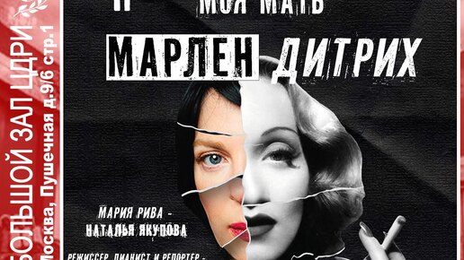 Реальный театр Марлен Дитрих — одна из самых ярких и загадочных фигур Золотого века Голливуда, икона стиля и элегантности, секс-символ эпохи. Она привлекала мужчин и женщин своим обаянием и таинственностью, ее боготворили самые привлекательные и талантливые мужчины своего времени: Джон Гилберт и Гари Купер, Поль Элюар и Кларк Гейбл, Эрих Ремарк и Жан Габен. Но кого любила она? Кто был главной любовью её жизни? Спектакль создан по самым скандальным мемуарам о Марлен Дитрих, написанным ее дочерью, Марией Ривой...