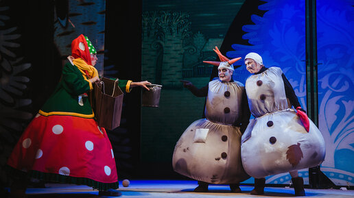 Детская сказка "Морозко" в Московском Губернском театре несколько удивила и шокировала своими новаторскими идеями. Хотя, бороздя просторы интернета оказалось, что подобные красавцы-снеговики сейчас очень популярны в театральной среде. Что касается самого спектакля - он несёт в себе свет и добрые помыслы, чего не скажешь глядя на эти творения Спектакль для детей от 3 лет, как показала практика, несколько скучноват своим однообразием и рассуждениями о добре и зле. Хотя о зле там практически ничего...