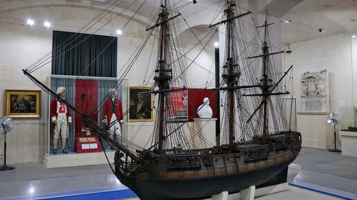 Вся история острова Мальта тесно связана с морем. И, разумеется, в её столице есть морской музей. Он не особо велик, но все же довольно интересен, и всем неравнодушным к кораблям и морскому делу я советую его посетить. Внутри музей выглядит так же, как и большинство подобных музеев по всему миру: модели кораблей, пушки, форма, картины, карты, приборы, инструменты и т.д. Модель линейного корабля третьего класса, принадлежавшего Мальтийскому ордену (середина 18-го века). Вероятно, модель использовалась...